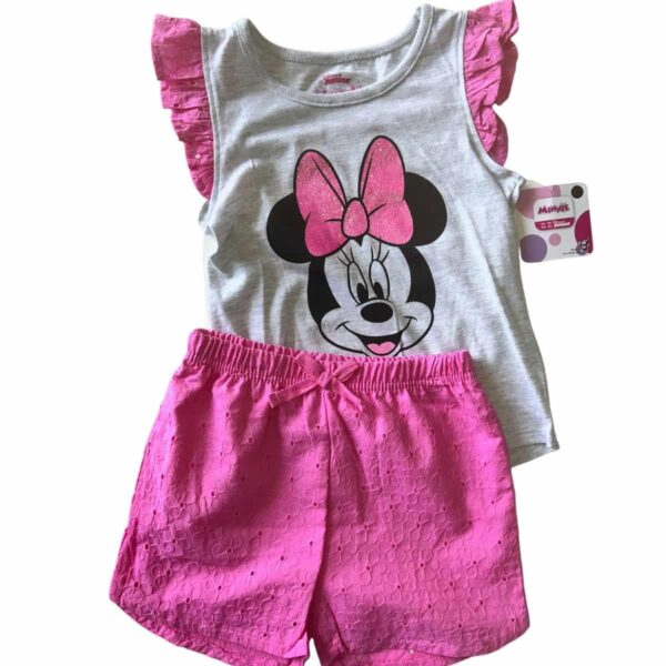 Disney camiseta de manga corta linda y elegante para niñas con pantalones cortos a juesgo. Cintura elastica para un mejor ajuste.