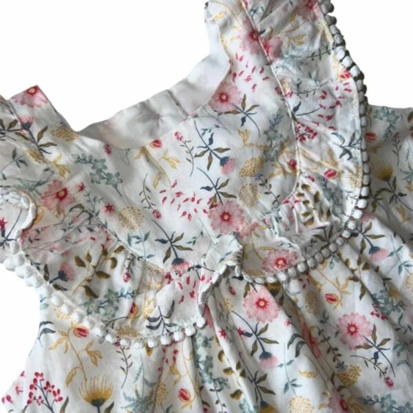 Túnica: cuello redondo, detalles de volantes, estampado, cierre con botones en la espalda