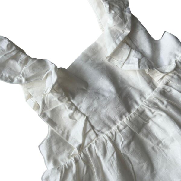Túnica: manga ondulada, detalle de volantes con ribete festoneado, abertura en la espalda con botón